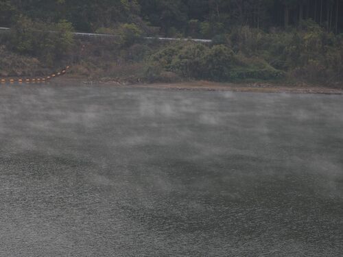 12月13日誘われて八幡岳へ 朝 峠越えでバイクを走らせましたが 気温1度となってました ダムを見ると湯気が立ってます 3人で川内峠 八幡岳 八幡岳キャンプ場 女山 船山キャンプ場まで 13キロほど 台風で倒木が多くてアスレチックみたいな所も有りました 山中…