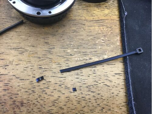 やはりピントリングの滑りが気になって対策をしました 弾力性のある押さえを必要としますので何かないかと探しましたらタイラップ、試しましたが幅が少し広く短くすると柔軟性も無くなり、厚みも有り過ぎで駄目でした 次に試したのはエアコンパイプの断熱材…
